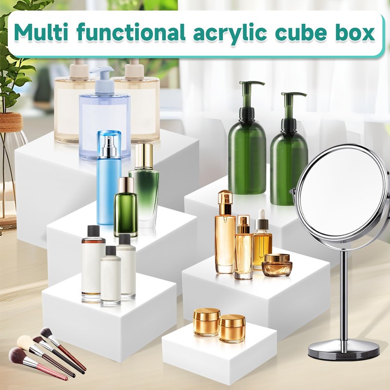 - Elevate Your Display Game with Acrylic Cube Boxes: These versatile stands are perfect for stacking and nesting, offering endless possibilities for showcasing cakes, plants, jewelry, cosmetics, and more with a stylish and functional touch.