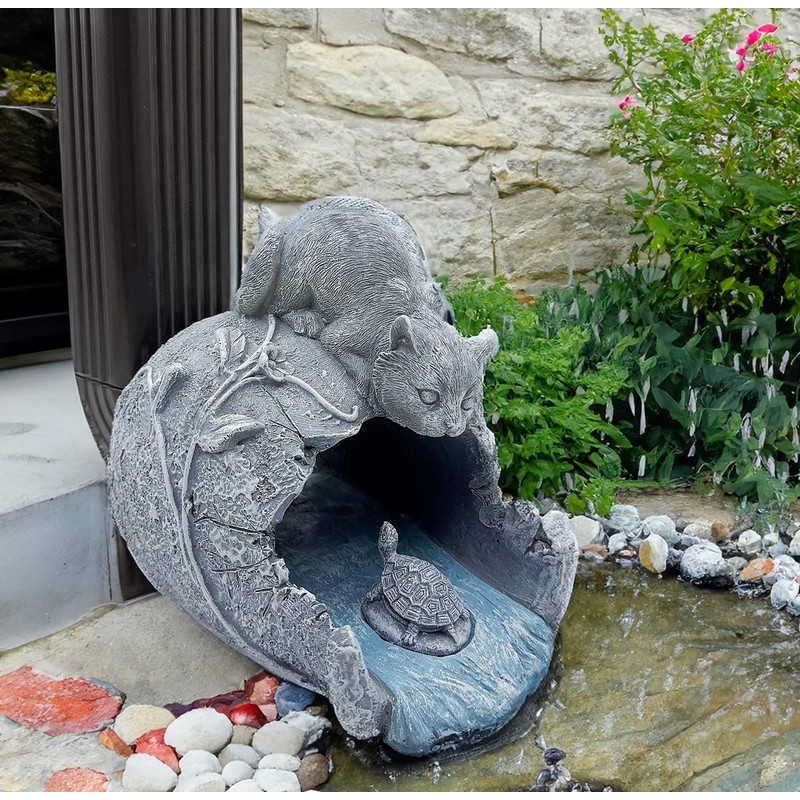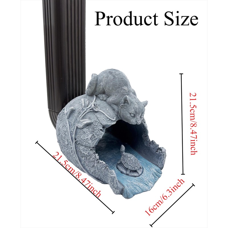 - Features an adorable cat engaged in a hide and seek game with a turtle, adding a whimsical touch to your garden downspout.