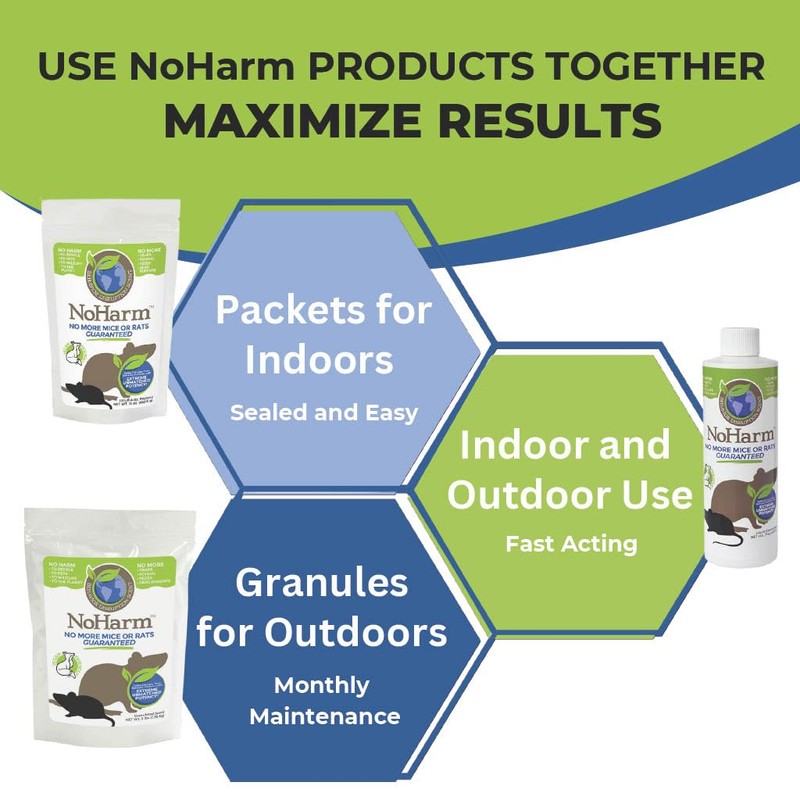 • COMBINE WITH NOHARM OUTDOORS: Use these NoHarm Liquid together with NoHarm Indoor Packets and/or NoHarm Granules for maximum protection