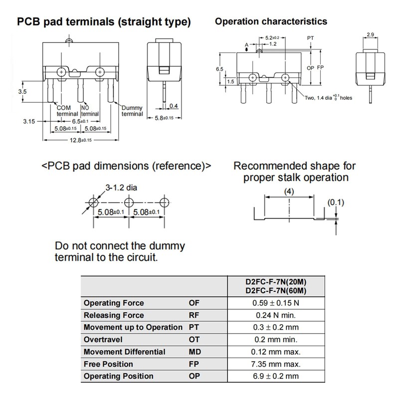 (1) Please be cautious not to give excessive static load or shock to switches.
