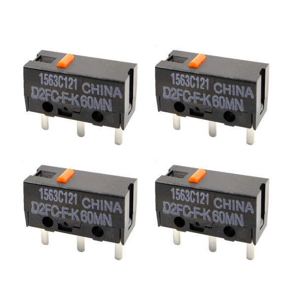 NoirVogel D2FC-F-K 60M Mouse Micro Switch (4pcs, Black-Red Dot), 0.74N, 60 Million Clicks for Gaming Mouse