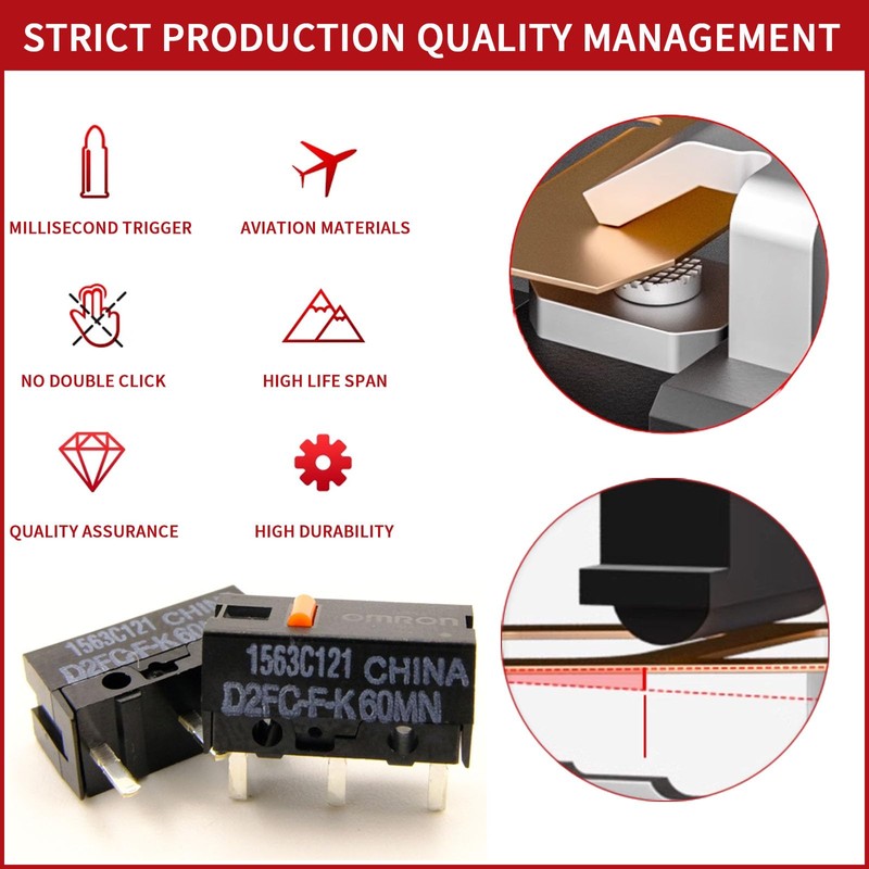 - 【Product Features:】life can reach 60 million micro-motions, red button points, longer life than ordinary 20M 30M 50M, uniform strength, crisp feel, and very high comfort.