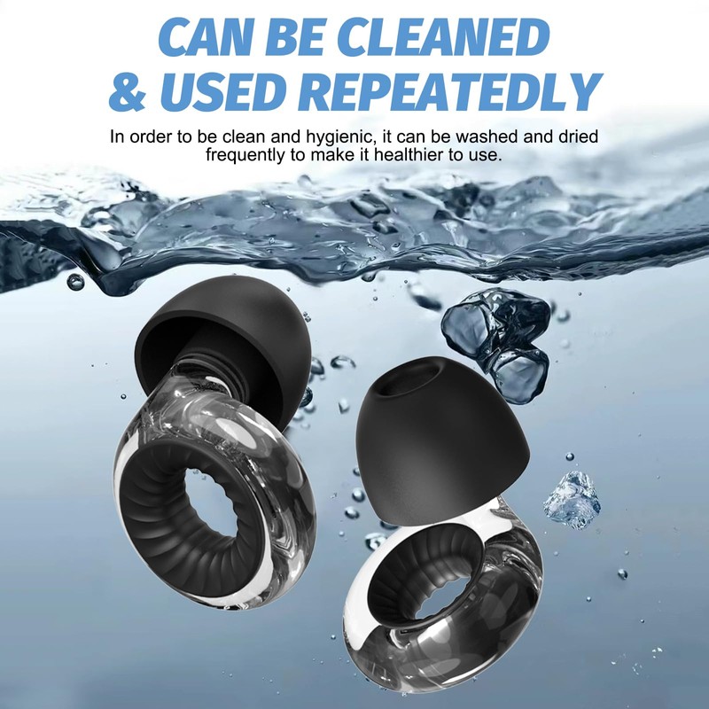 Noise Reducing Earplugs, Ear Plugs for Sleeping, Reusable Earplugs, Ideal for Sensitive Hearing at Sleep, Travel and Office, Hearing Protection for Concerts, Live Events (Transparent + Black)