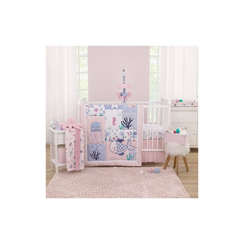 NoJo Mermaid Lagoon Pink, and Blue Sea Friends Super Soft Contoured Changing Pad Cover