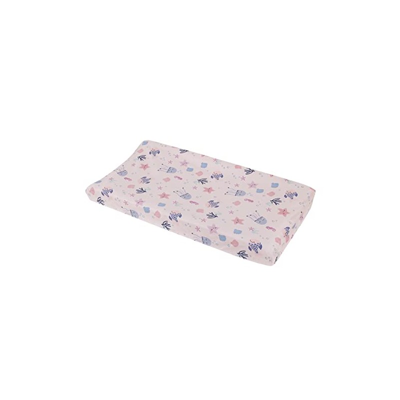 - Mermaid Lagoon Changing Pad Cover features fun sea friends in shades of pink, blue, and aqua