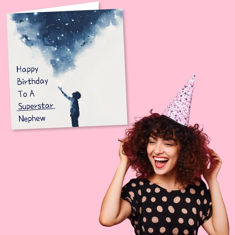 Nokular Happy Birthday To A Superstar Nephew - Best Nephew - Starry Night Watercolour - For Nephew, From Aunt to Nephew, From Uncle to Nephew