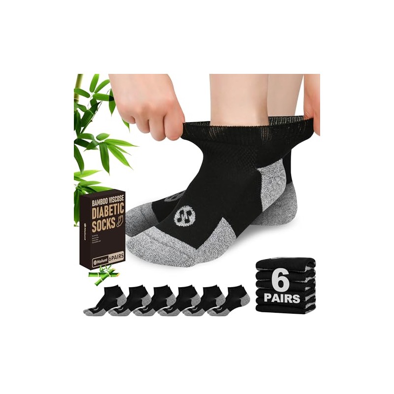 • MOISTURE WICKING AND BREATHABLE: Nolunt diabetic socks are made from bamboo viscose and polyester, which is breathable and keeps your feet dry all day long; the non-binding design helps to promote blood circulation without leaving ugly marks, freeing up your calves.