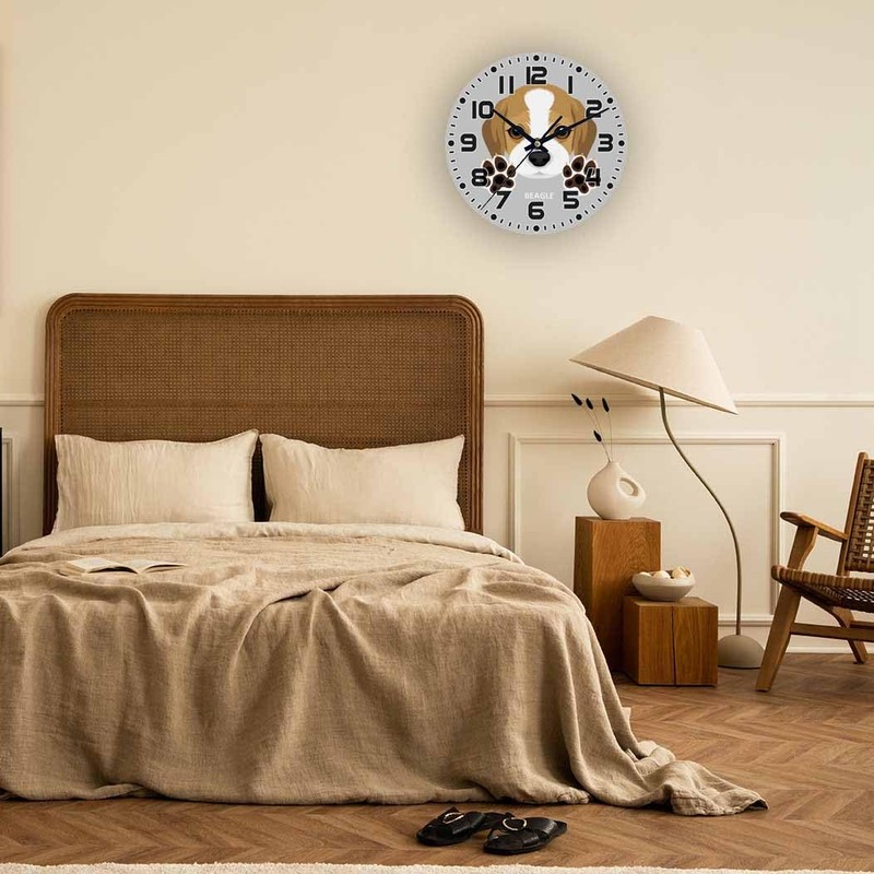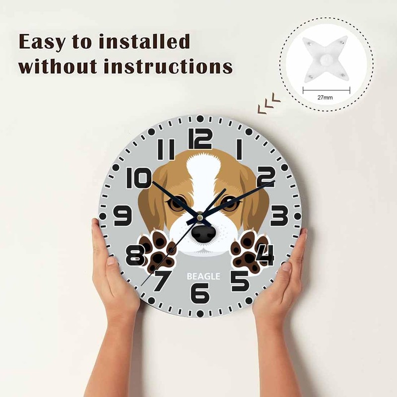 NOMEDOGYIM Dog Wall Clock 10 inch Round Dog Paw Silent Non Ticking Wood Wall Clocks Battery Operated Easy to Read Decorative Wall Clock for Bedroom Kitchen Living Room Bathroom
