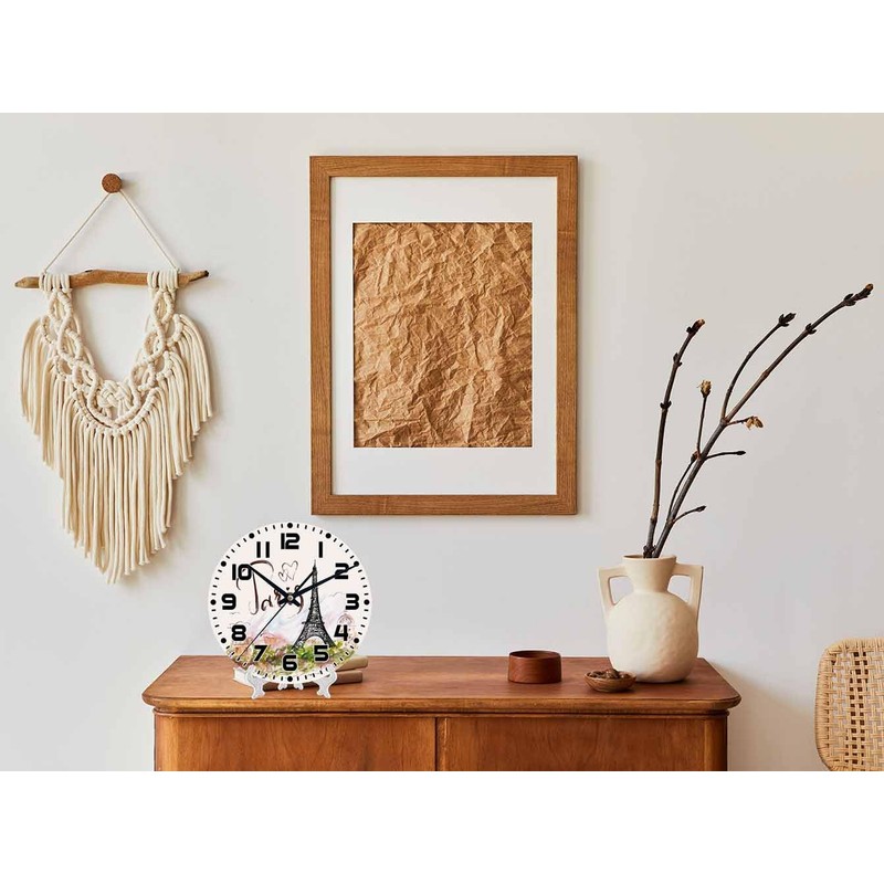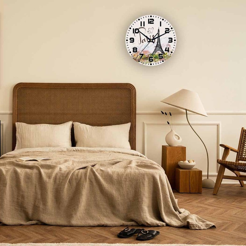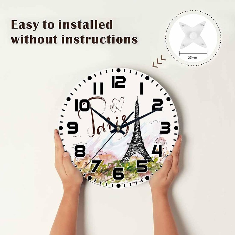 NOMEDOGYIM Eiffel Tower Wall Clock Battery Operated Romantic Landmark Wall Clock Silent Non Ticking Quality Quartz 10 Inch Round Easy Clock to Read for Home Office