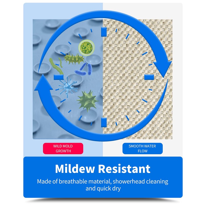 • Easy Cleaning: Foam on top can be easily rinsed off. You can simply use a showerhead and just leave the mat with lattice bottom up on your bathroom floor, or hang over your bathtub, your bath safety bar. The mat can dry fast and will not get moldy easily, which creates no smell and marks on your floor.