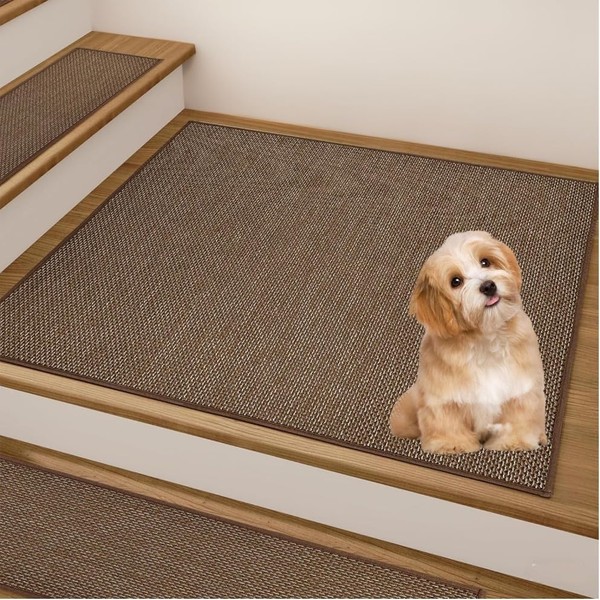 Non Slip Liner Stair Treads Matching Mat for Wooden Steps, 30"x30" Square Stair Landing Rug with Rubber Backing, Washable Indoor Safety Stair Landing Mat for Kids Elders Dogs, Brown