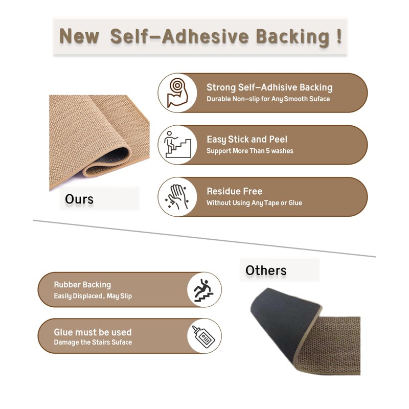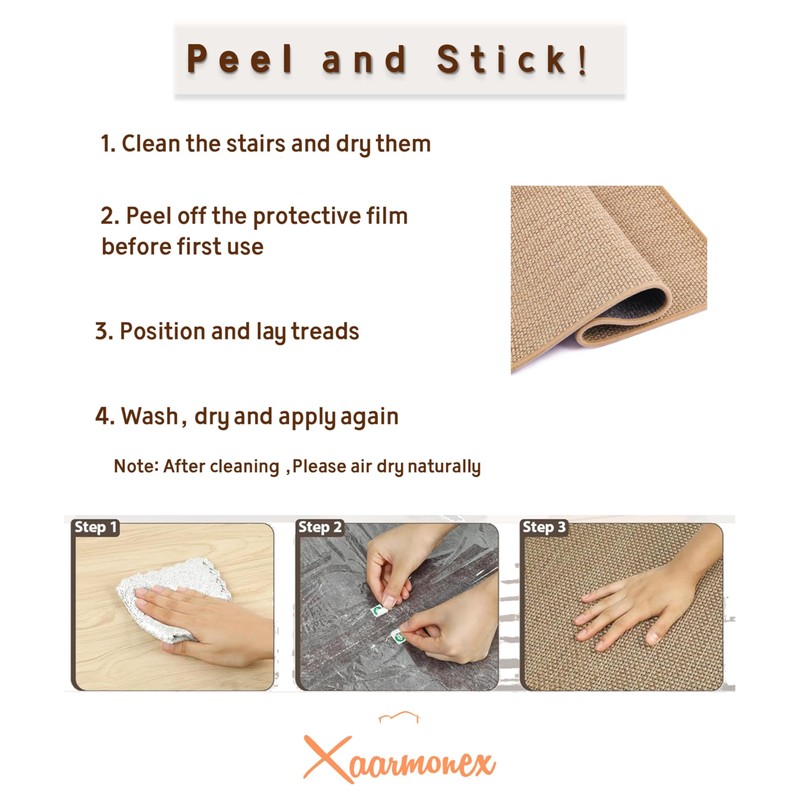 - 【Peel and Stick, Easy Installation】Clean, peel, and stick for quick setup. Removal the Steair Runners leaves no residue, preserving the stairs' finish.