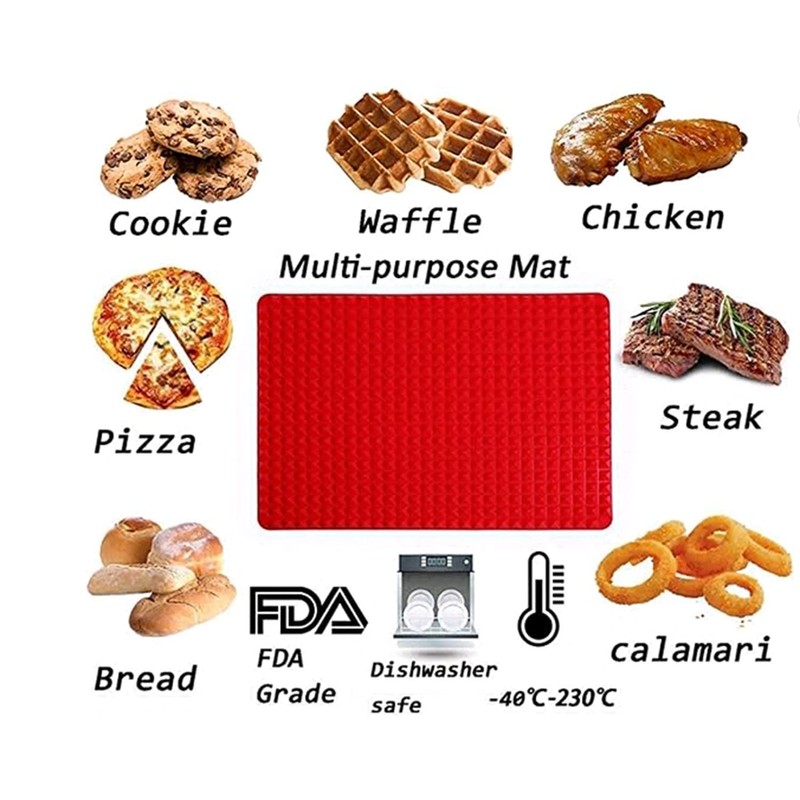 Non-Stick Silicone Baking, Pyramid Healthy Cooking Oven Mat Fat Red-2 Pack by Alpenkok (Red)