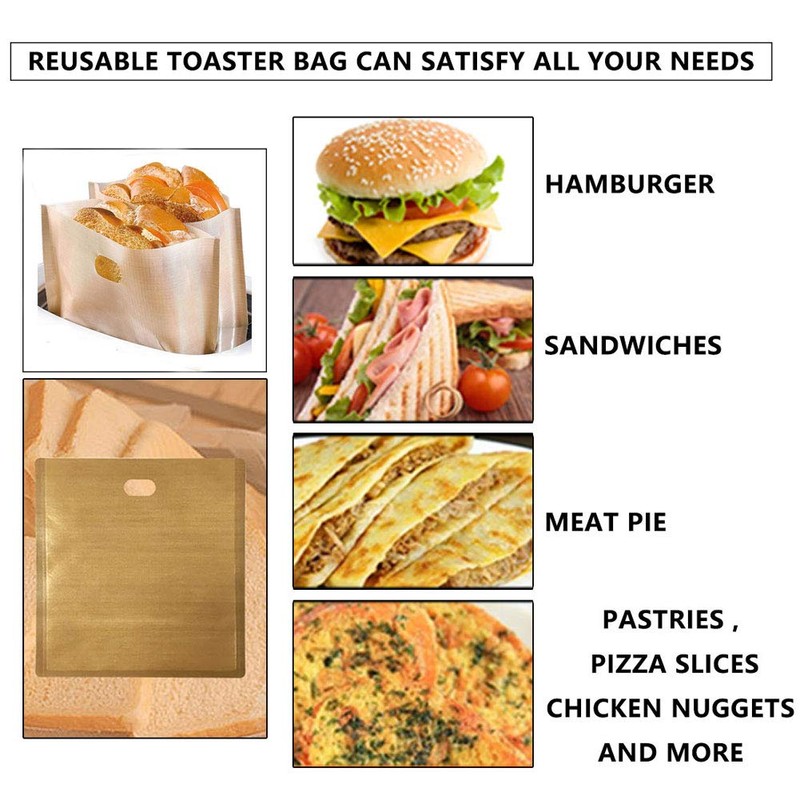 - MULTIPURPOSE-You can use toaster bag to make all kinds of toasted sandwiches or to heat up pastries,pizza slices,chicken nuggets and more.