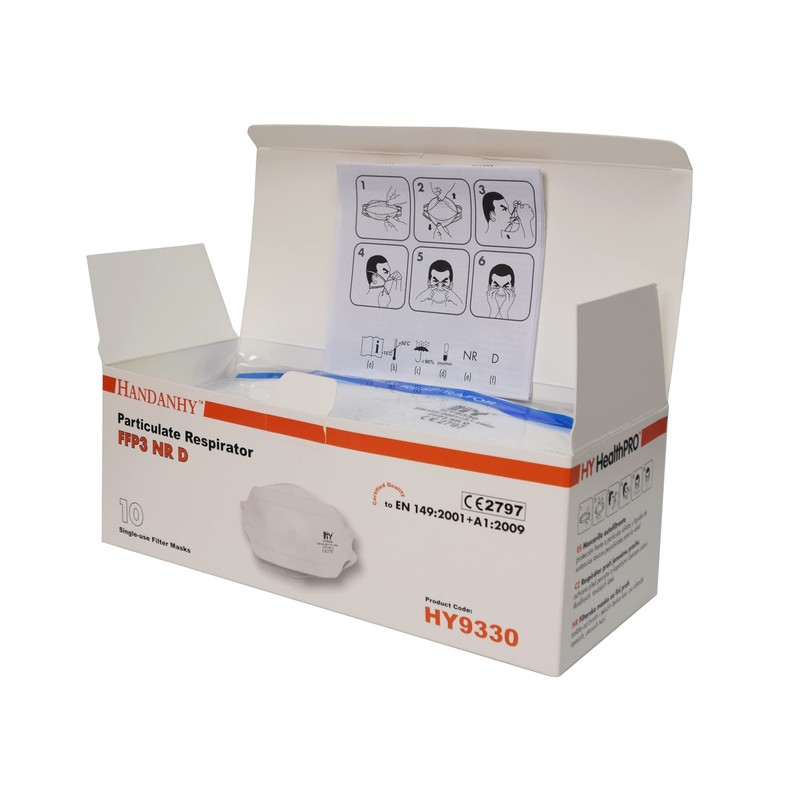 Non-Valved FFP3 Face Masks, Handanhy HY9330 Pro NR D Premium Disposable Respirator - CE Certified & Tested by BSI, Individually Wrapped (10)