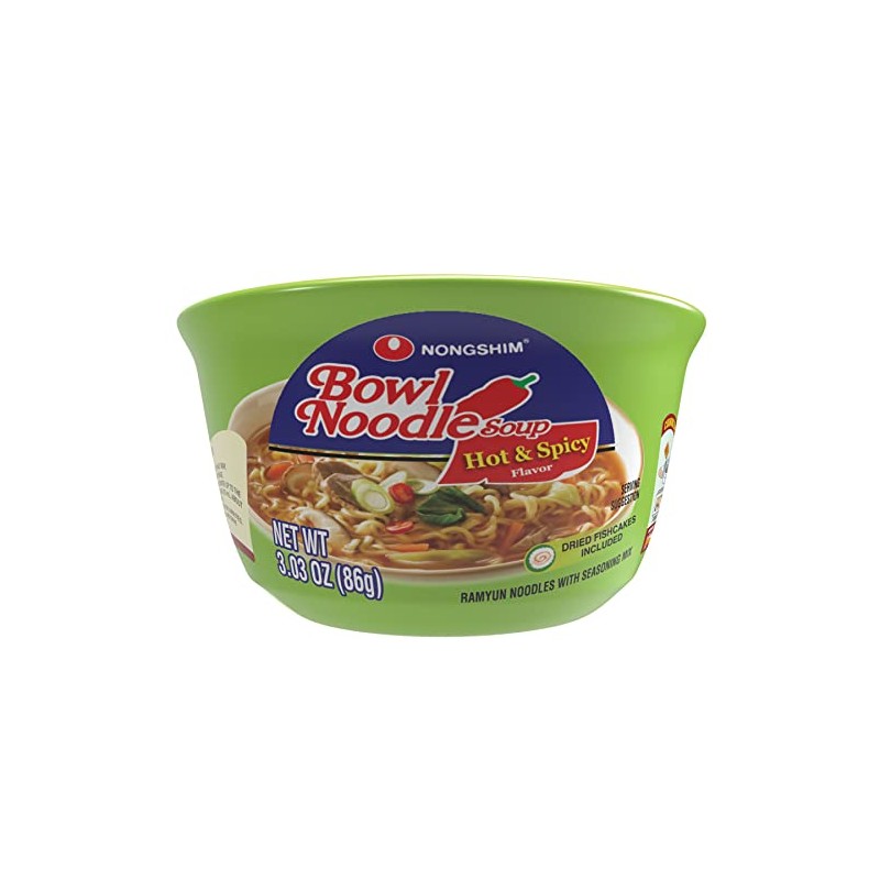 Nongshim Ramen Noodles, Gourmet Instant Ramen bowl, Premium Microwavable Noodle Soup, Hot & Spicy, 3.03 Ounce (Pack of 6)
