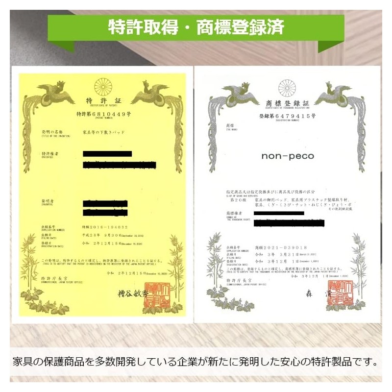 - Product Name: Tatami / Carpet / Flooring / Curing Pad, Non-Peko Size: 3.9 inches (10 cm), Low Thickness: 0.4 inches (1 cm); Material: Circumference: Felt, Filling: Soft PVC laminate. Quantity: 4 pieces. Country of Origin: Japan. Features: Tatami protection, dent, scratch prevention. Patent No. 6810449. No. 5 [How to use] If you have a non-slip product, please peel off the protective film. Precautions for Use: It may be damaged if used with sharp objects. Do not use this product for any purpose other than its intended purpose