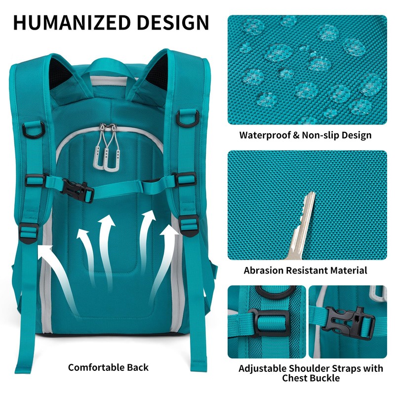 - 【COMFY BACK PANEL】The ski backpack back panel is padded with foam to prevent hard boots from pressing against your back.The padded sides and back panel serve to protect internal equipment and reduce the overall sensation of carrying a heavy load.Thickened ergonomically designed shoulder straps enhance comfort, while adjustable chest and waist straps offer increased stability.For added safety, the chest strap of ski backpack is equipped with a lifesaving whistle for emergency use.