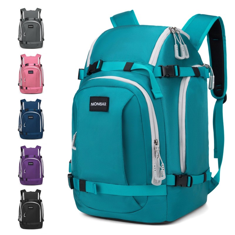 NONSAR Ski Boot Bag, 50L Snowboard Boot Travel Backpack - Waterproof Ski Bag for Ski Helmet, Googles, Gloves, Skis, Snowboard & Accessories for Men Women