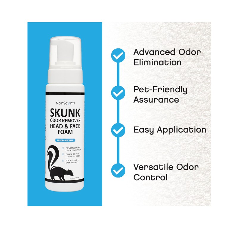 - USER-FRIENDLY APPLICATION: Designed with simplicity in mind, our NonScents Skunk Odor Remover offers a hassle-free application process. Just rub the foam thoroughly into the affected area and allow it to dry. There's no need for complicated procedures or extensive scrubbing – our straightforward approach delivers exceptional results.