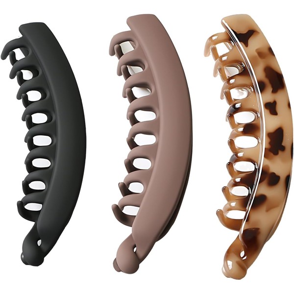 - Package and Size: The package contains 3pcs banana clips for hairs. The size of banana hair clips is about 5 inch/12.7cm long. Each hairpin has its own unique beautiful color, which can be matched with your clothes. Suitable for women with long, curly, thick or medium-thick hair. Banana clip has a unique design style.
