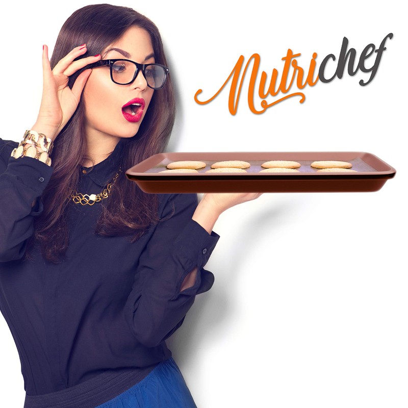 Nonstick Cookie Sheet Baking Pan - 2pc Large & Medium Metal Oven Baking Tray, Professional Quality Kitchen Cooking Non-Stick Bake Trays w/ Rimmed Borders, Guaranteed NOT to Warp - NutriChef NC2TRRG