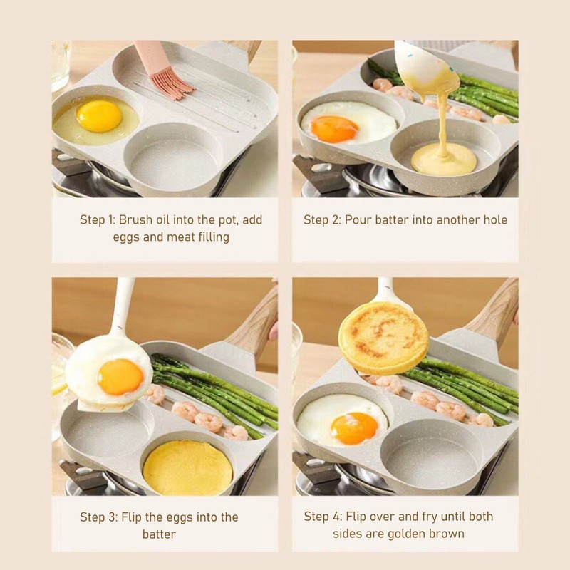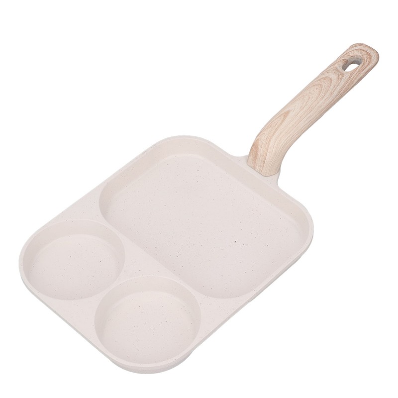 1、Comfort Handle: The comfortable handle makes this fried egg pan easy to operate. Whether you want to flip the pancake like a professional or pour out the Fagata filling, this fried egg pan will allow all your cooking to end up on your plate without sticking to the pan. 2、Aluminum Alloy Material: The egg frying pan is made of aluminum alloy and is manufactured using integrated die casting technology. The pot body is sturdy and durable, evenly heated, making it easy to make a delicious breakfast. 3、Non Stick Coating: Our egg frying pan uses a non stick medical stone coating, which is harmless and no longer sticks to the bottom of the pot, making it easy to release. Cleaning with water after cooking is very easy. 4、Wide Compatibility: Our pancake pan can be used for Induction cooker, gas stove, electric stove and ceramic stove. It is perfect for frying eggs, making pancakes, fried eggs, and hamburgers. 5、Exquisite And Beautiful: 3 section nonstick egg frying pan is perfect for beginners in cooking. Exquisite workmanship, beautiful appearance, providing you great using experience.