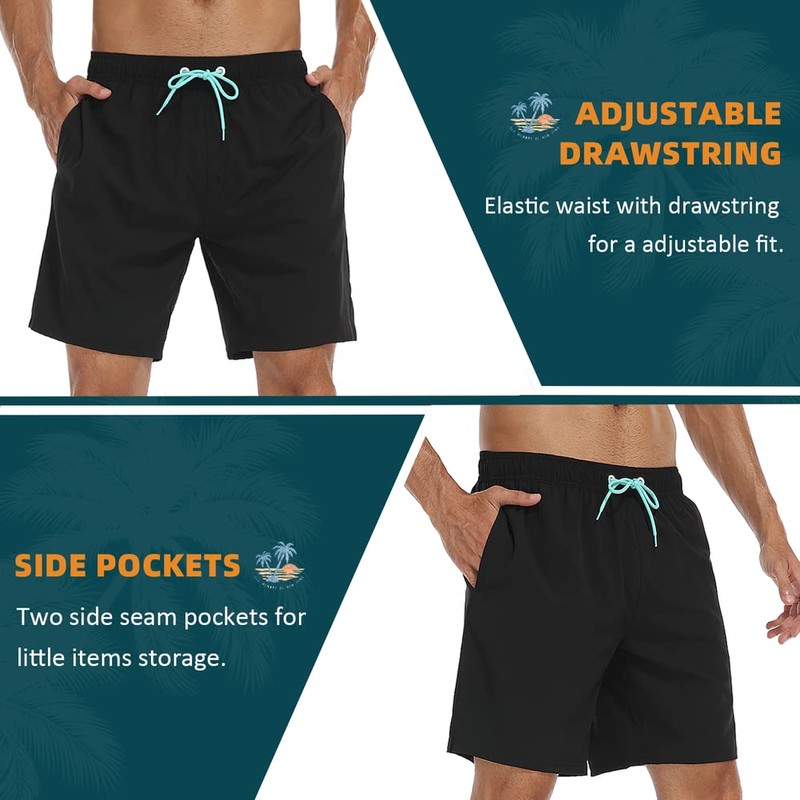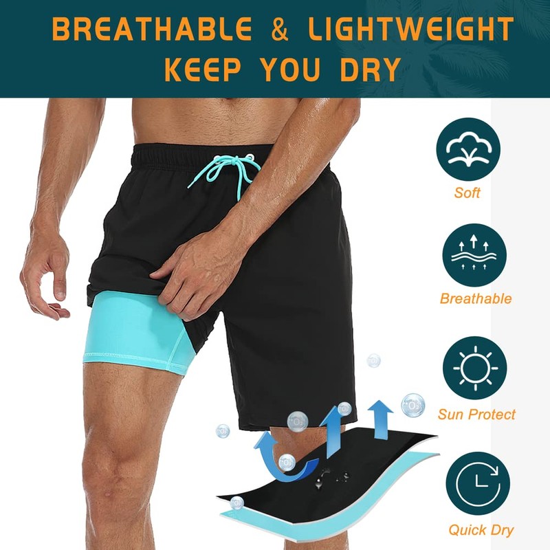 - Quick-Dry Material: Men's swim trunks feature a compression liner made of 95% polyester and 5% spandex. The quick-dry, lightweight, and breathable fabric keeps you cool and fresh all day. The 4-way stretch boxer brief provides extra support and comfort