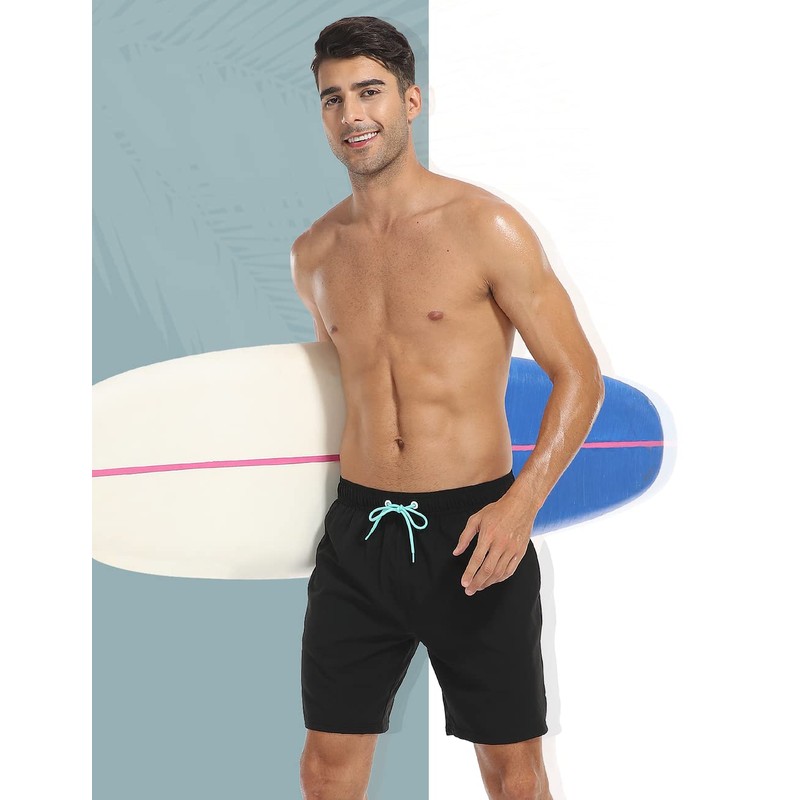 Nonwe Men's Swim Trunks Bathing Suits Quick Dry 4-Way Stretch Compression Beach Shorts with Pockets Black 34