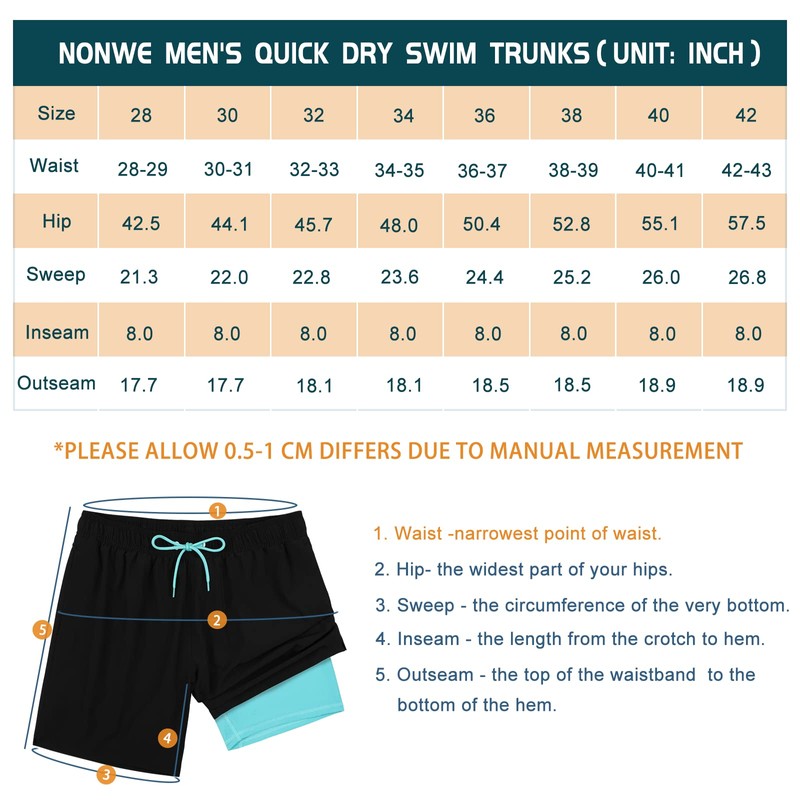 - Elastic Waist with Drawstring: Mens bathing suits with boxer brief liner designed with a full elastic waist and drawstring for an adjustable fit, ensuring the beach shorts stay in place and not slip down when you're out or in the water