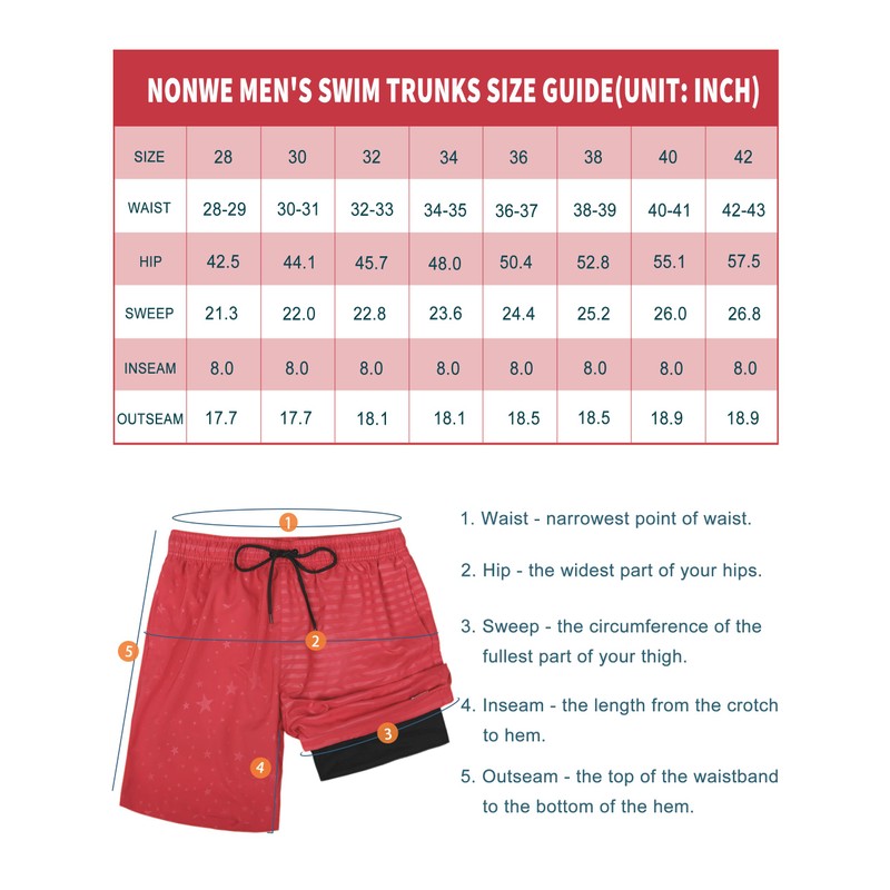 - Material: Mens Swim Trunks with Compression Liner made of quick dry, lightweight and 4 way stretch fabric to keep you dry and breathable all day long. A wonderful gift perfect for your lover this summe