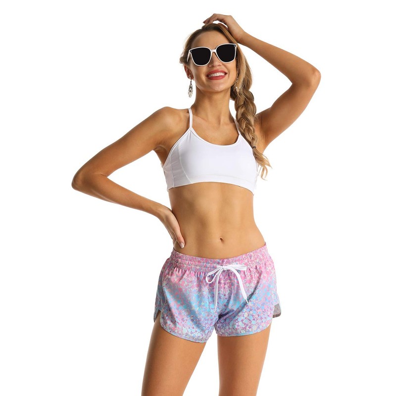 Nonwe Women's Board Shorts Quick Dry Solid Summer Beach Surf Trunks Drawstring Blue Printed XL