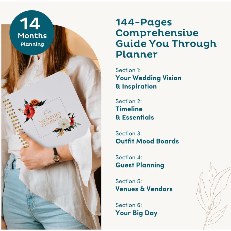 - Well-Thought-Out Contents - 144 pages of quality wedding planner book to help you plan your perfect day in a breeze. Large 9”x11” with elegant hardcover plus gold foil stamping. High-quality 157 gsm smudge-free paper, no bleed-through while writing.