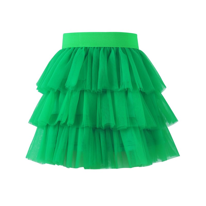 Noomelfish Little Girls Layered Tutu Skirt Ruffle Tiered Tulle Party Dance Skirts, Green, Size 5-6 Years