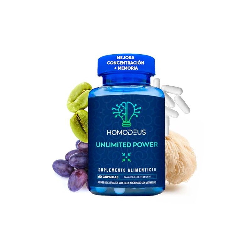 homodeus - Nootropico para la Mente con Complejo B, Melena de Leon, suplemento natural para Concentracion, Memoria y Agilidad Mental | con L-Carnitina, Bacopa Monnieri, L-Tirosina y Semilla de Uva | 60 capsulas. 💯 Autenticidad y máxima durabilidad comprobadas. Materiales de alta gama y acabados premium. 🏆 Recomendado por expertos. Ideal para quienes buscan lo mejor en calidad y estilo. Producto auténtico con satisfacción total asegurada. ¡No te quedes sin el tuyo y aprovecha esta oportunidad única!