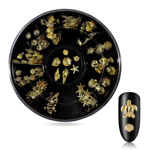 NOPKESV 3D Gold Seesterne Shell Nail Charms, Nail Art Dekoration, Ocean Nail Gems für Frauen Acryl Nägel (Gold)