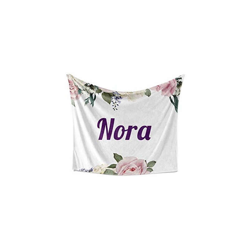 Nora Blanket - Personalized Plush Fleece Flower Throw with Name, Custom Soft Cozy Warm Blanket, Customized Birthday, Holiday Present Idea, 50x60 Inches