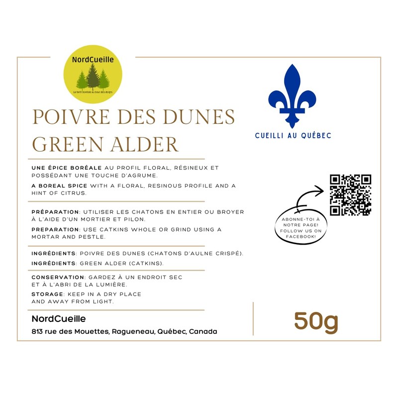 - Unique Seasoning: Poivre des dunes is the name given to the male catkins of the green alder tree, offering a complex yet pleasant flavour with a floral aroma and a hint of typical forest bitterness.