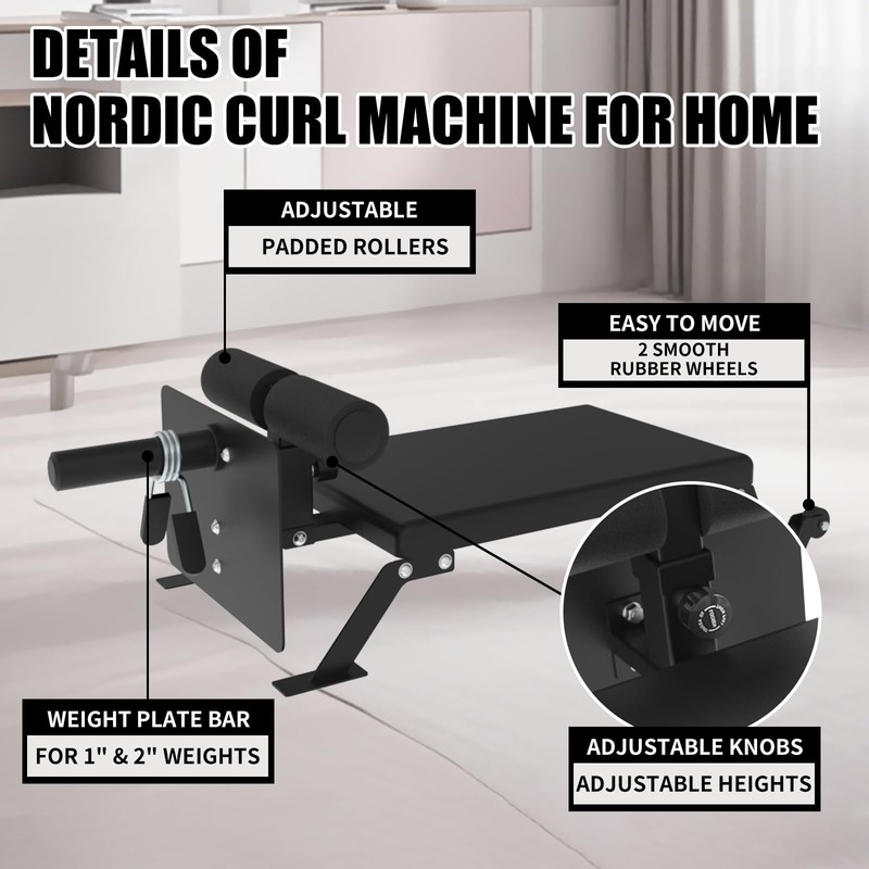 Nordic Curl Bench Machine, Hamstring Curl Bench with Wheels for Home Gym, Black