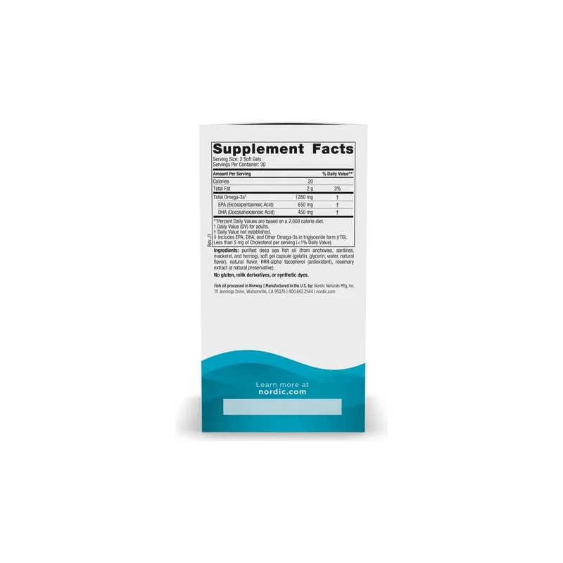 Nordic Naturals Suplemento Ultimate Omega, 1280 mg de Omega, 60cap Sabor Limón para 1 mes