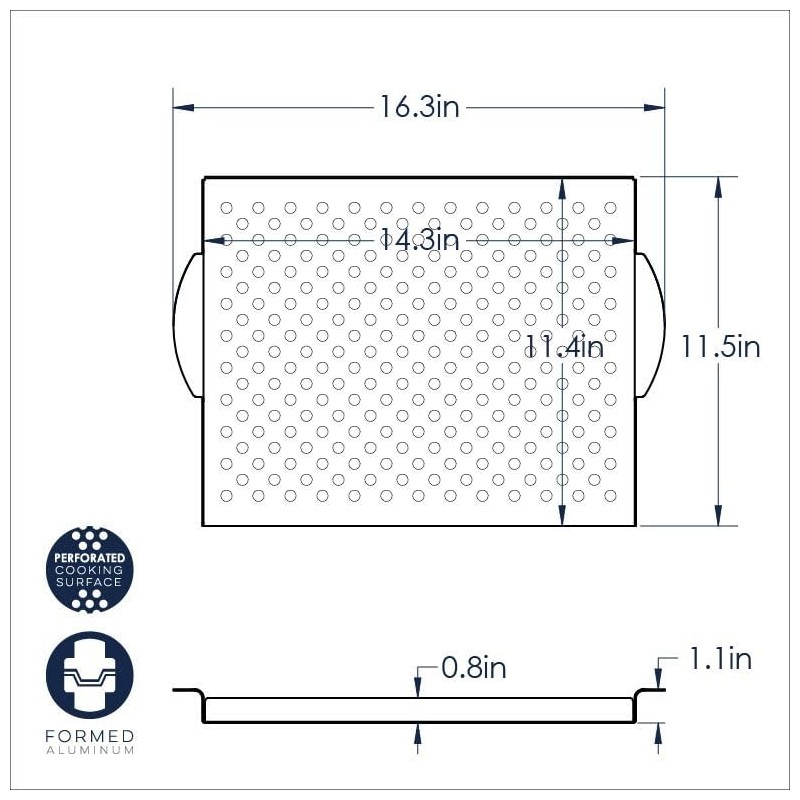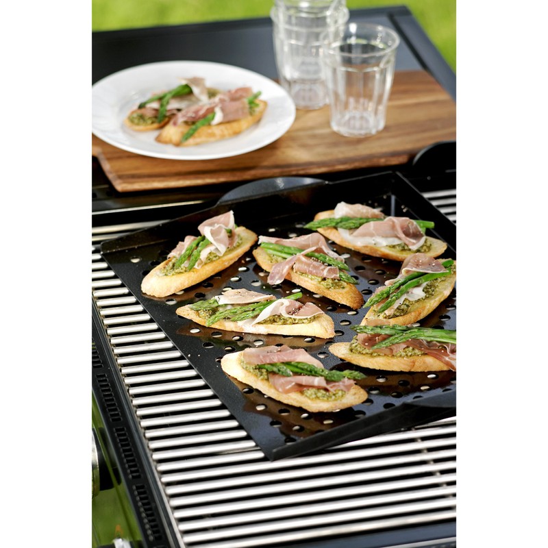 Introducing 365 indoor/outdoor products designed to inspire culinary creativity indoors and out, 365 days a year. Discover the versatility in our line that brings outdoor flavors to indoor cooking, and indoor convenience to outdoor grilling. Crafted with the all- American chef in mind, 365 is the only full line of indoor/outdoor grill cookware. Grilling = manly. But sometimes what your grilling is delicate. Prevent the smallest of foods from falling victim to the furnace below. Perfect for preparing bruschetta, delicate fish and vegetables. Nonstick coated with built in handles. Proudly made in the USA.