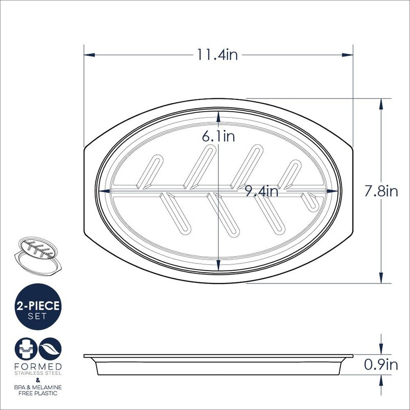 - The outside dimensions of the steak server are 7.75 inches wide by 11.38 inches length