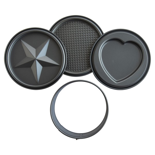 - This versatile pan set includes three styled bases a classic, a heart and a star shape for year-round style with one pan