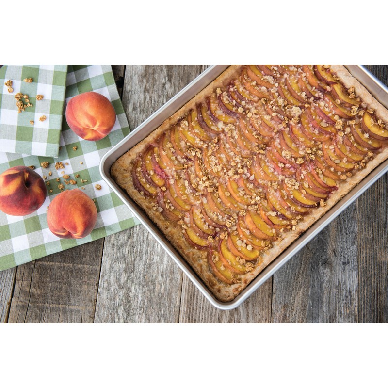 A necessity for any chef's kitchen, baking professionals know that the secret to evenly-baked and perfectly browned food is to cook with aluminum bakeware. Aluminum is widely known for its excellent heat conductivity and cooks more evenly and thoroughly than other metals. This commercial-duty pan is made of even-heating rust-proof aluminum and features a galvanized steel reinforcement around the rims for added strength. This sheet cake baking pan is perfect for full depth sheet cakes, lasagnas and bars, with its 2 inch sides. Turns out perfect results every time. Proudly made in the USA by Nordic Ware.