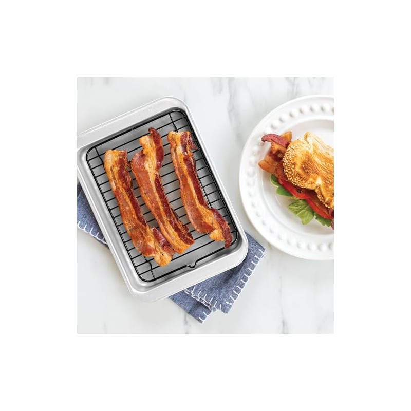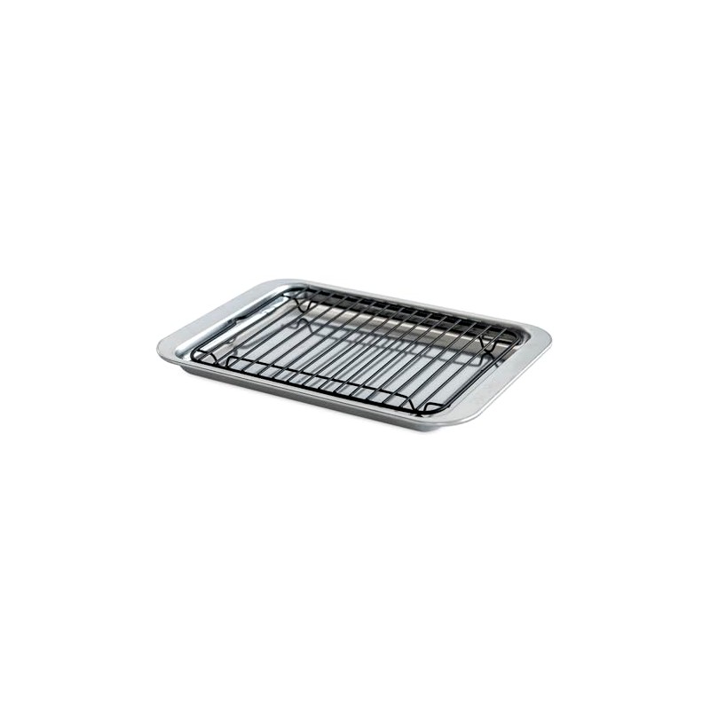 • This versatile baking or broiling compact set includes a natural aluminum baking sheet with a nonstick broiling rack insert