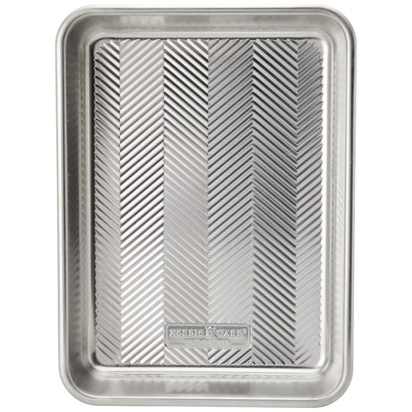 Embossed grid pattern enhances the look and performance of our hugely popular baking pans. Exclusively Prism grid adds strength, durability, scratch- resistance, and easy release while improving air flow for crisping. Natural aluminum affords the best possible heat dispersion to create perfectly browned baked goods every time. Smooth and handsome Prism grid pattern adds strength and durability to this Deluxe baking pan. An upscale version of a kitchen staple that you'll reach for time after time. Aluminum for even heating and the best possible baking results.