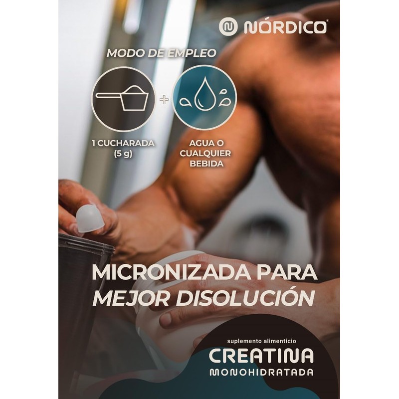 Nórdico® - Creatina Monohidratada, Alta Pureza, Sin Sabor, 100% natural, 90 porciones 450 gramos.