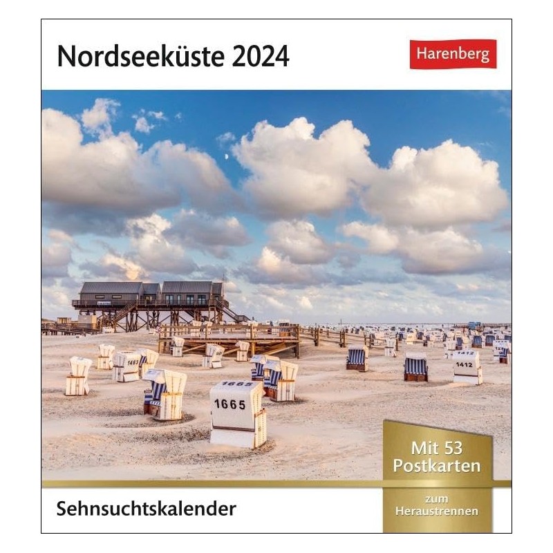Nordseeküste Sehnsuchtskalender 2024: Wochenkalender mit 53 Postkarten