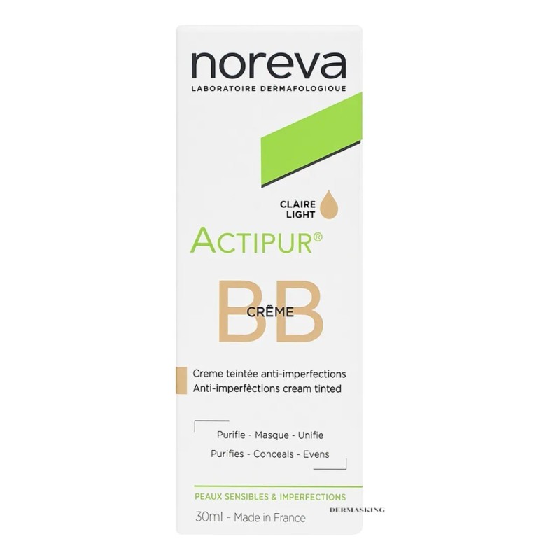 Dale a tu piel el cuidado que necesita con la BB Cream Noreva Actipur Light, un tratamiento dermatológico todo en uno que unifica el tono, hidrata, controla el brillo y combate las imperfecciones, todo en una textura ligera y no grasa. Especialmente formulada para pieles sensibles, mixtas, grasas y con acné, esta crema con color te proporciona un acabado natural, mate y saludable desde la primera aplicación.