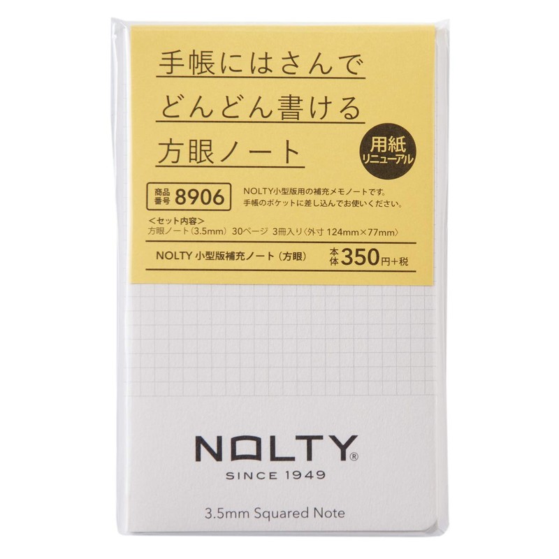 Noritsu NOLTY 8906 Notebook, Small Edition, Refill Notebook, Squared, Set of 3